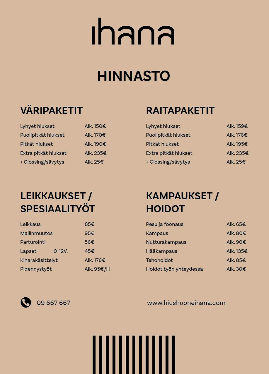 Koti ihanalaiset Hinnasto